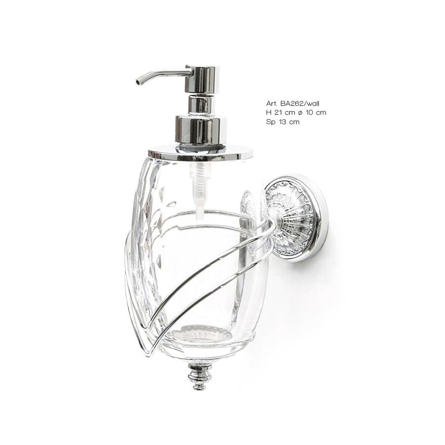 Soap dispenser on wall in italian hand-cutted crystal and chrome brass. Functional elements that create an extremely elegant, welcoming and high-value bathroom.
