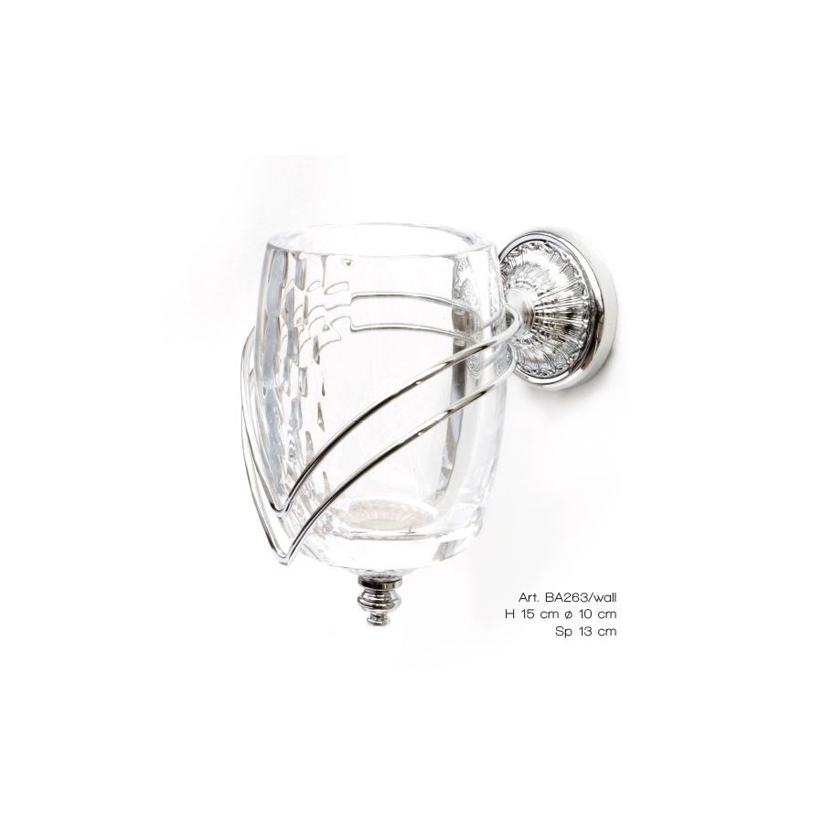 Toothbrush holder on wall in italian hand-cutted crystal and chrome brass. Functional elements that create an extremely elegant, welcoming and high-value bathroom.