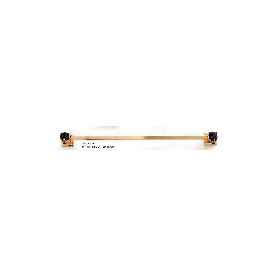 Towel holder in gold 24k with micro casting of enameled brass panther. Functional elements that create an extremely elegant, welcoming and high-value bathroom.