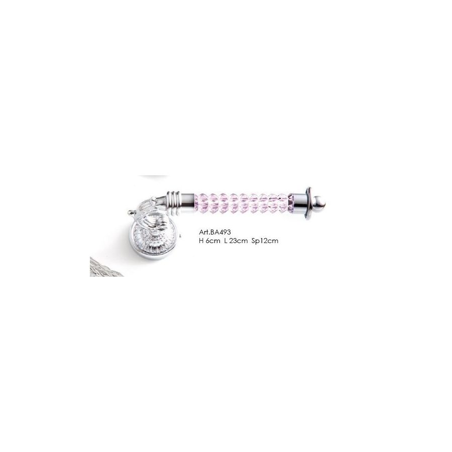 Roll Holder in brass and pink italian hand-cutted crystal. Functional elements that create an extremely elegant, welcoming and high-value bathroom.