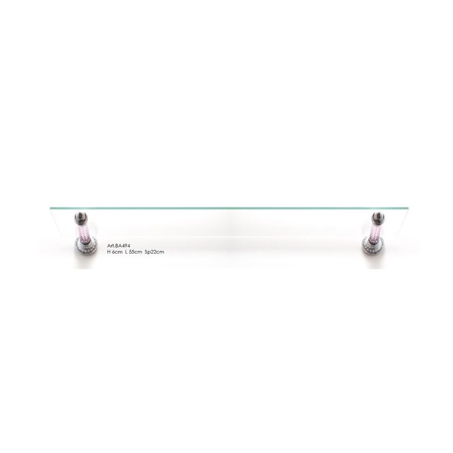 Shelf in clear glass, brass and pink italian hand-cutted crystal. Functional elements that create an extremely elegant, welcoming and high-value bathroom.