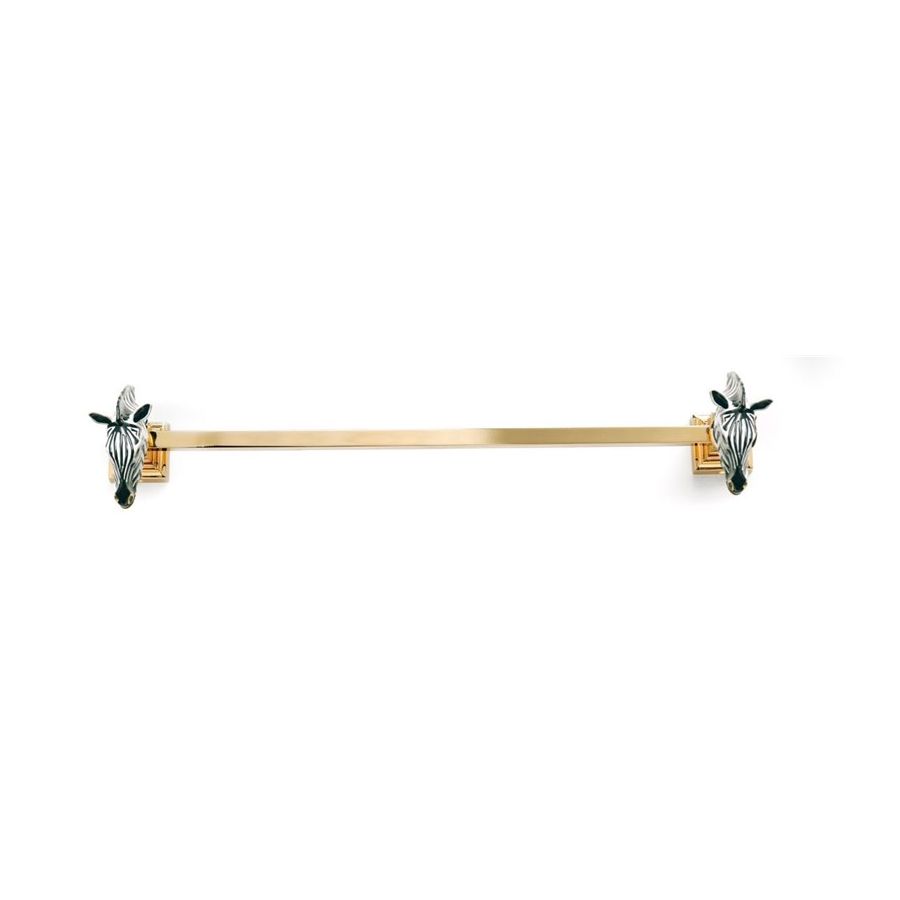 Towel holder in gold 24k with micro casting of enameled brass zebra. Functional elements that create an extremely elegant, welcoming and high-value bathroom.
