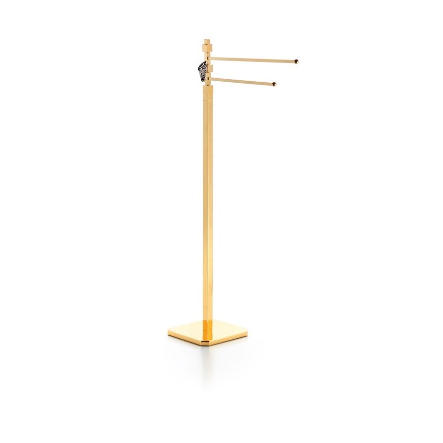 Floor towel holder in gold 24K with micro casting of enameled brass OWL. Functional elements that create an extremely elegant, welcoming and high-value bathroom.