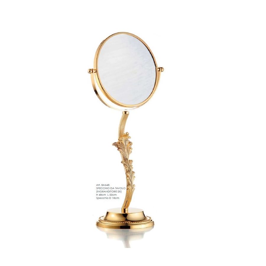 Table mirror with magnifying (2x) with casting brass leaves and rectangular tube. Functional elements that create an extremely elegant, welcoming and high-value bathroom.