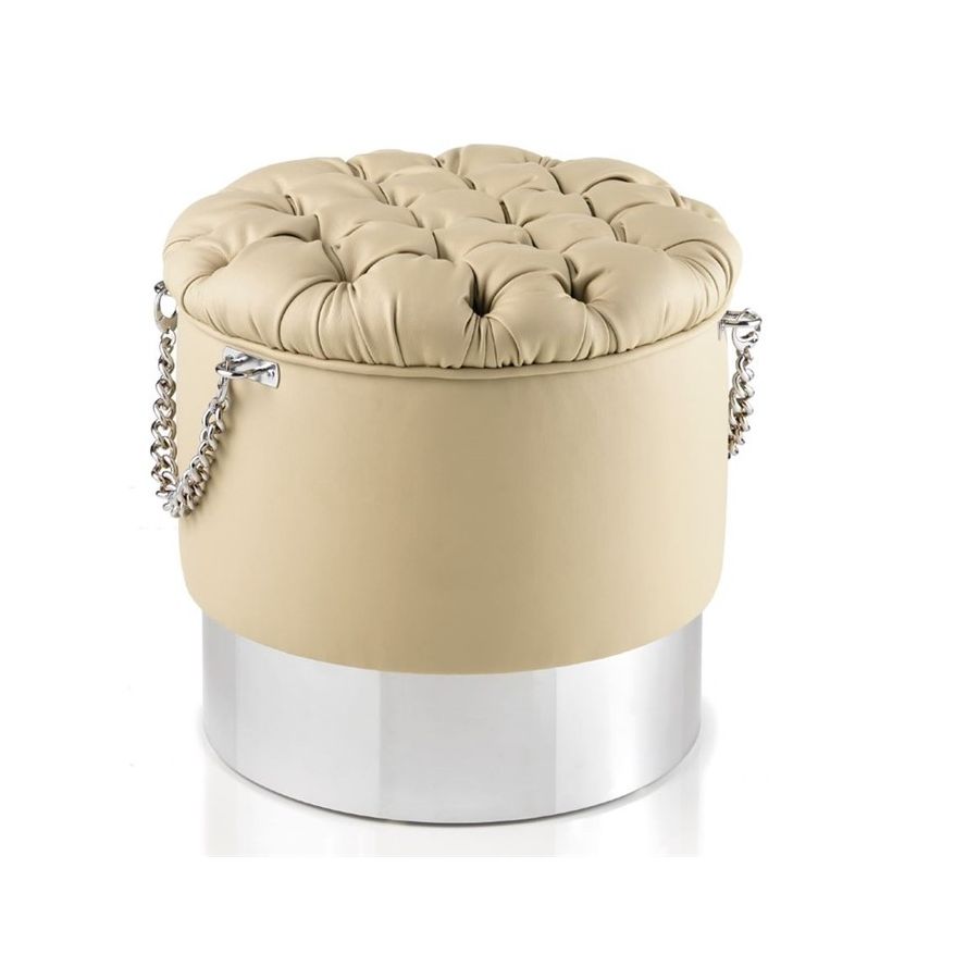 Pouff in eco pelle sand color with chain. Brass metal polished nikel.