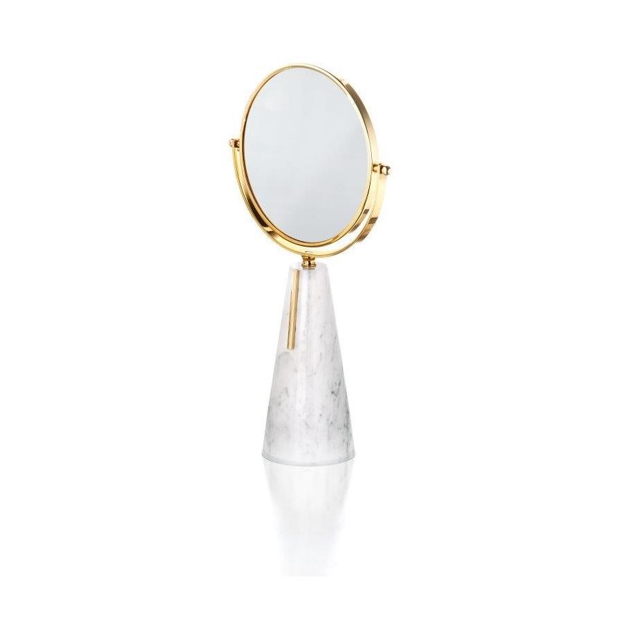 Table double mirror (2x) in Carra Marble decorated with gold brass element. Functional elements that create an extremely elegant, welcoming and high-value bathroom.