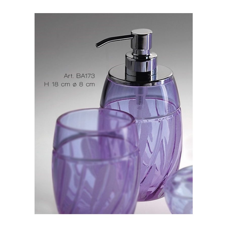 Soap dispenser in alessandrite italian hand-cutted crystal. Functional elements that create an extremely elegant, welcoming and high-value bathroom.