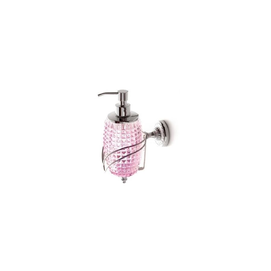 Soap dispenser in pink italian Crystal and brass (to hang). Functional elements that create an extremely elegant, welcoming and high-value bathroom.