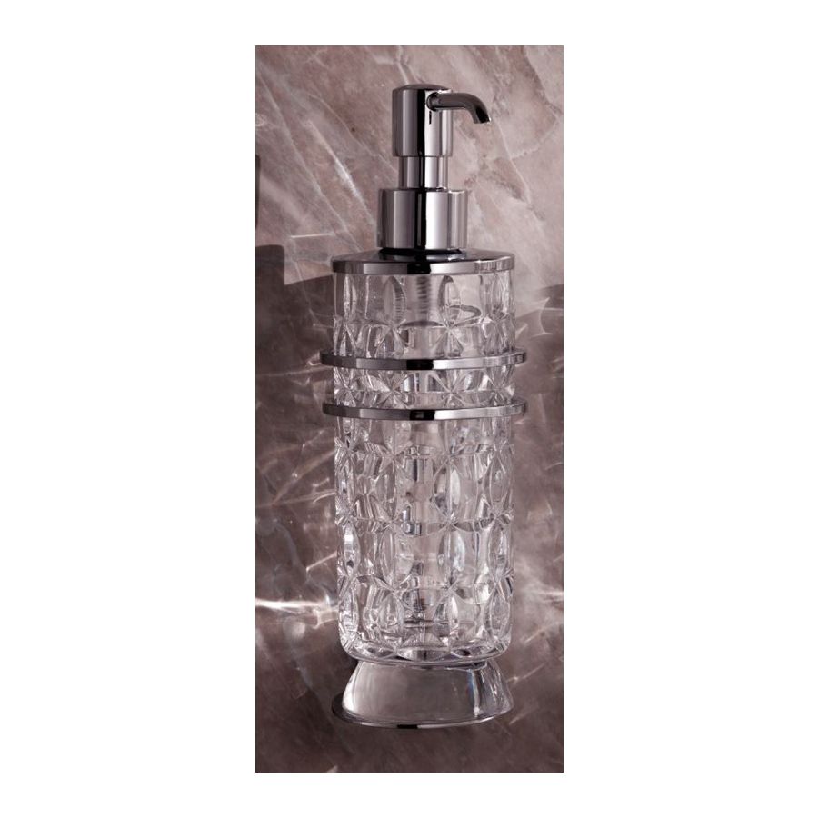 Italian hand-cut crystal set with three-dimensional circles pattern. Wall Soap Dispenser. Functional elements that create an extremely elegant, welcoming and high-value bathroom.