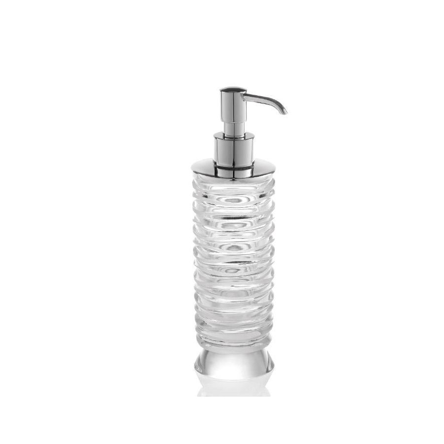 Wave set Italian hand-cut crystal set with three-dimensional waves alternate matt and transparent pattern. Pb 24% crystal Soap Dispenser. Functional elements that create an extremely elegant, welcoming and high-value bathroom.