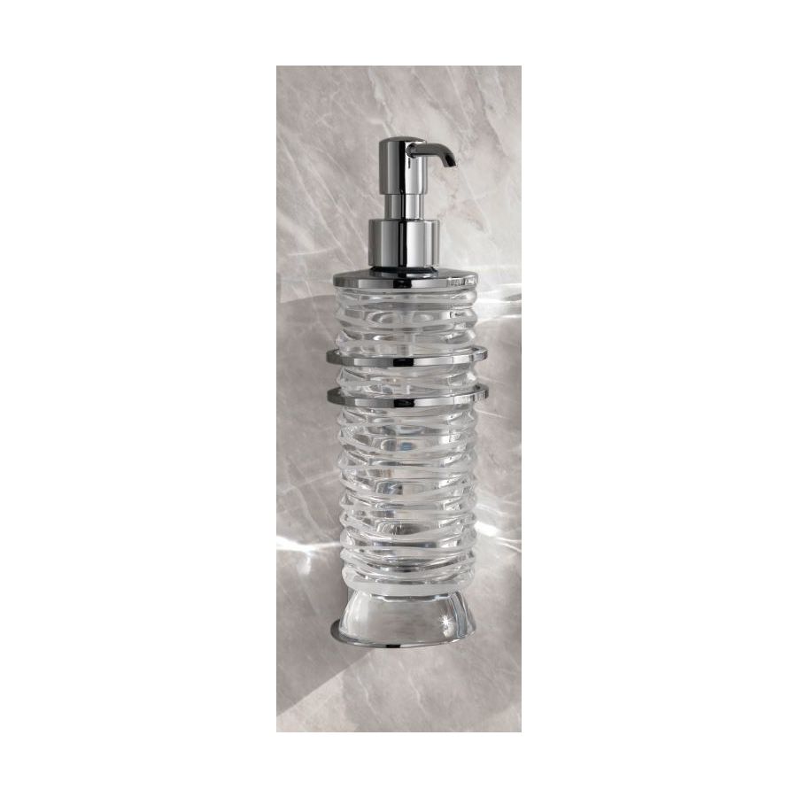 Wawe set Italian hand-cut crystal set with three-dimensional circles pattern. Wall Pb 24% crystal Soap Dispenser. Functional elements that create an extremely elegant, welcoming and high-value bathroom.