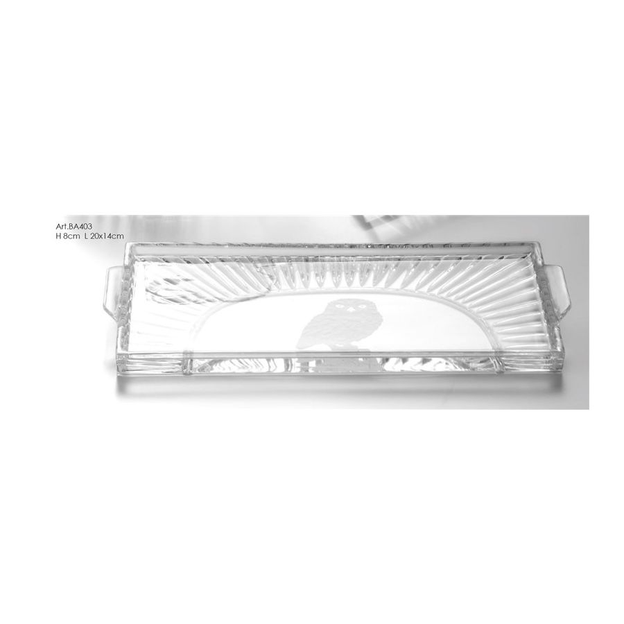 Italian Crystal tray with hand-engraved owl figure. Functional elements that create an extremely elegant, welcoming and high-value bathroom.