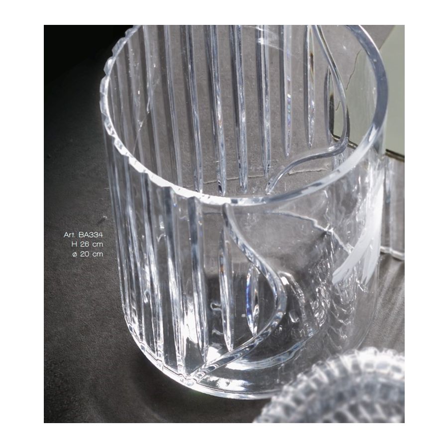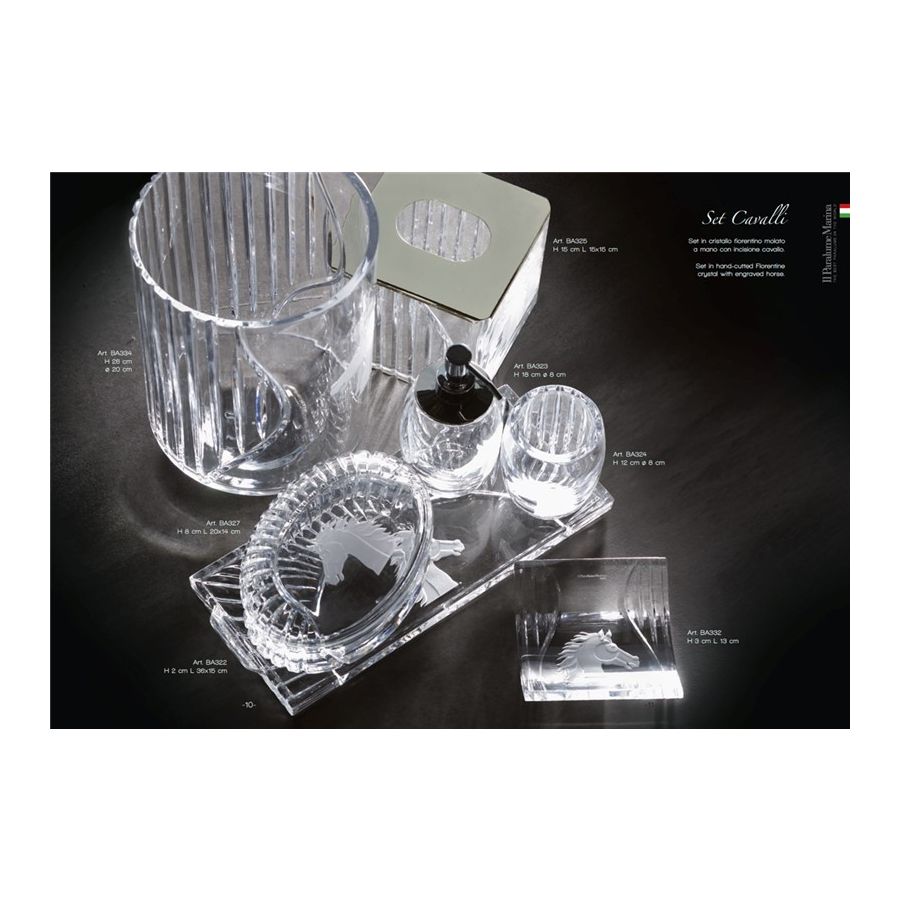Waste basket in italian hand-cutted crystal with engraved horse image. Functional elements that create an extremely elegant, welcoming and high-value bathroom.