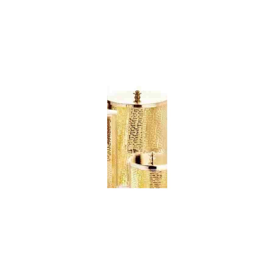 Waste basket in hammered brass with cover. Functional elements that create an extremely elegant, welcoming and high-value bathroom.