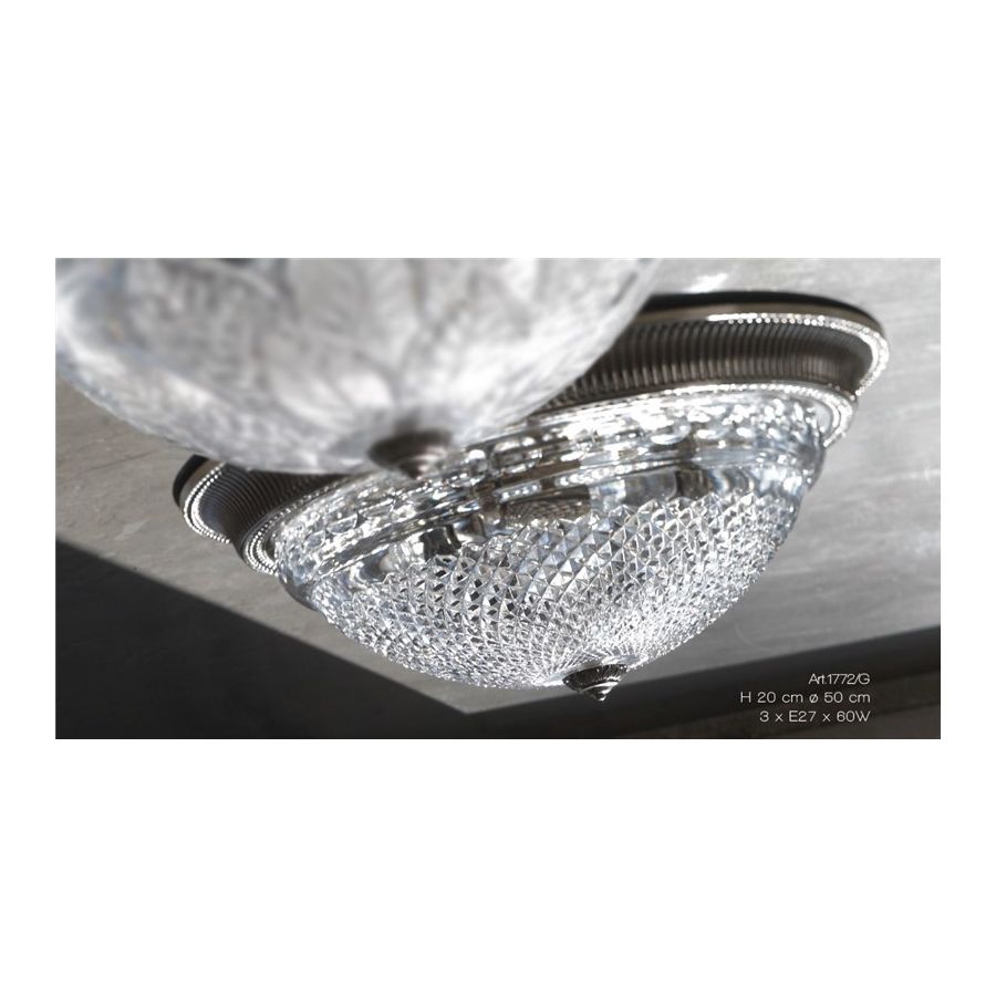 Ceiling Lamp in Florentine Crystal cut by hand. Lighting item that diffuses the light with great effect in the surrounding environement creating a warm and welcoming atmosphere.