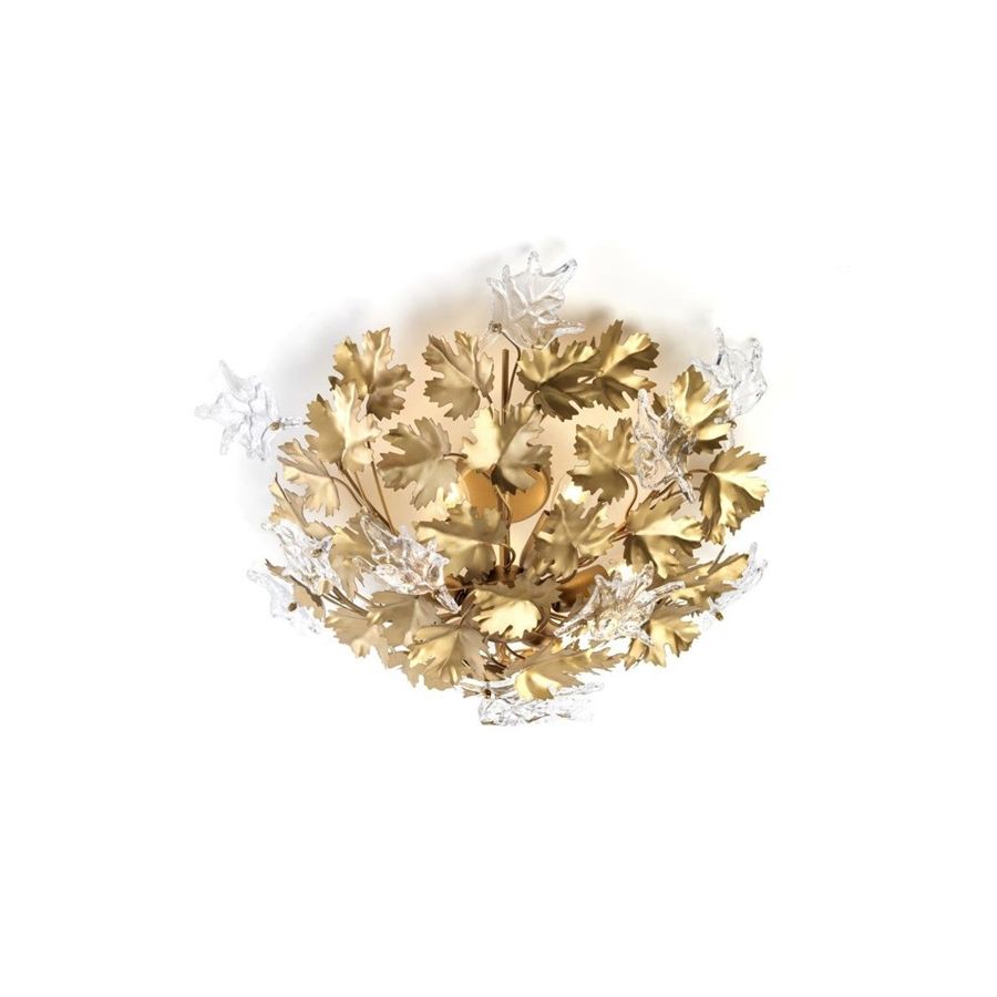 Ceiling lamp with VINE LEAVES in metal and Murano glass. Lighting item that diffuses the light with great effect in the surrounding environement creating a warm and welcoming atmosphere.