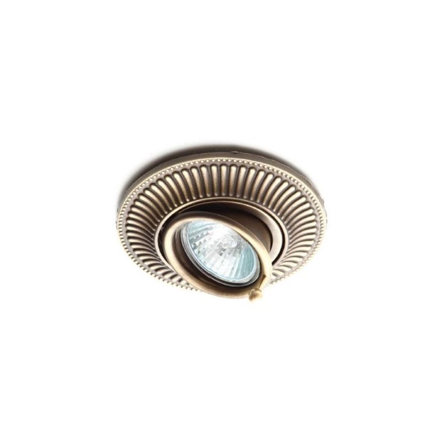 Recessed spotlight in brass with turning mechanism (bulb excluded). Lighting item that diffuses the light with great effect in the surrounding environement creating a warm and welcoming atmosphere.