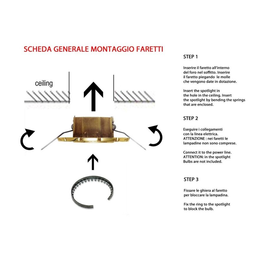 Recessed spotlight in brass (bulb excluded). Lighting item that diffuses the light with great effect in the surrounding environement creating a warm and welcoming atmosphere.