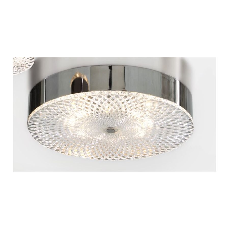 Ceiling lamp with italian crystal disk "rombus" 3D cut. Lighting item that diffuses the light with great effect in the surrounding environement creating a warm and welcoming atmosphere.