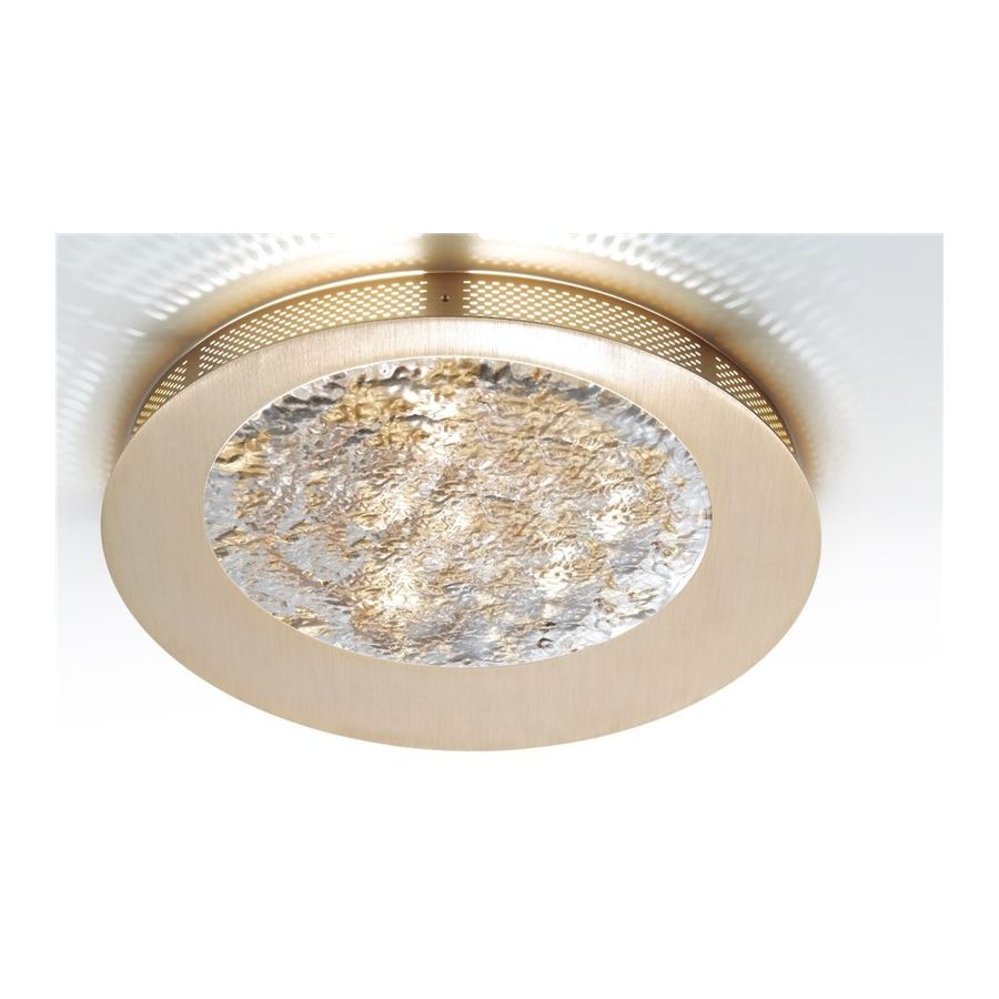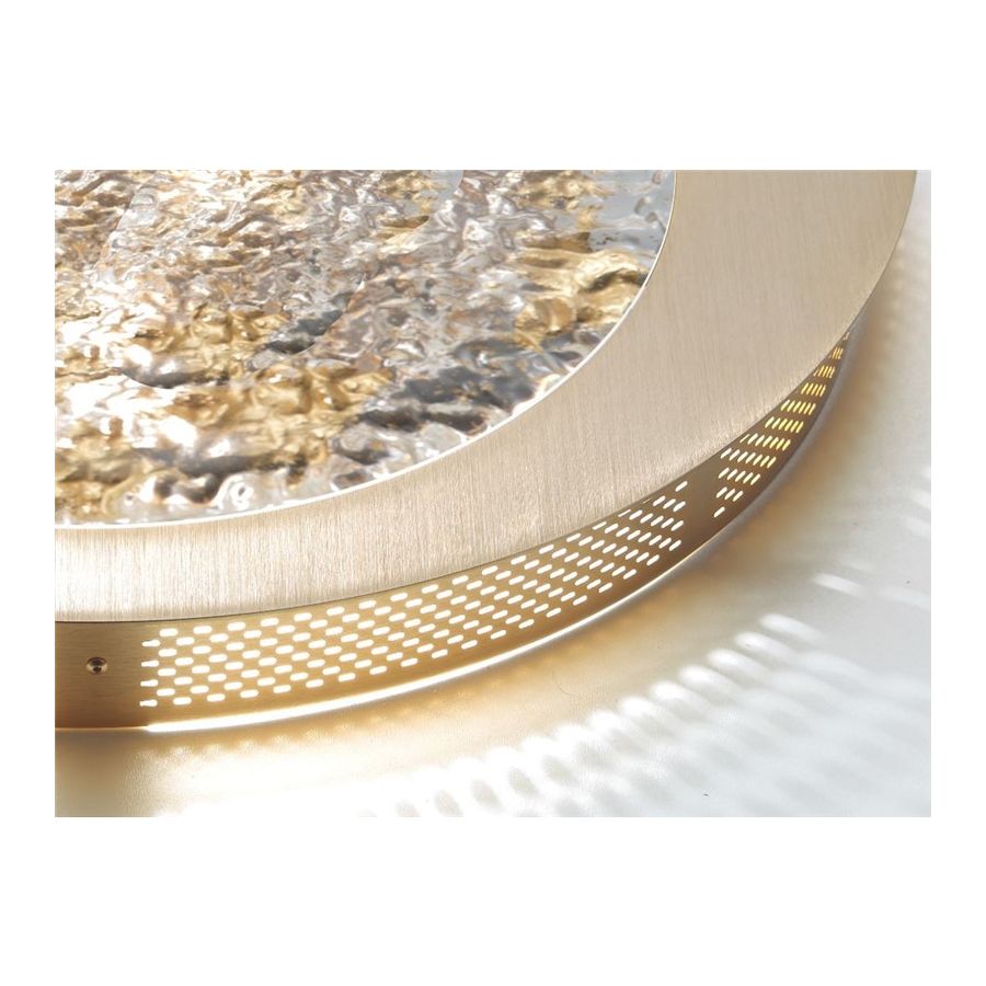 Ceiling lamp/wall sconce with hammered glass decorated in gold leaf. Lighting item that diffuses the light with great effect in the surrounding environement creating a warm and welcoming atmosphere.