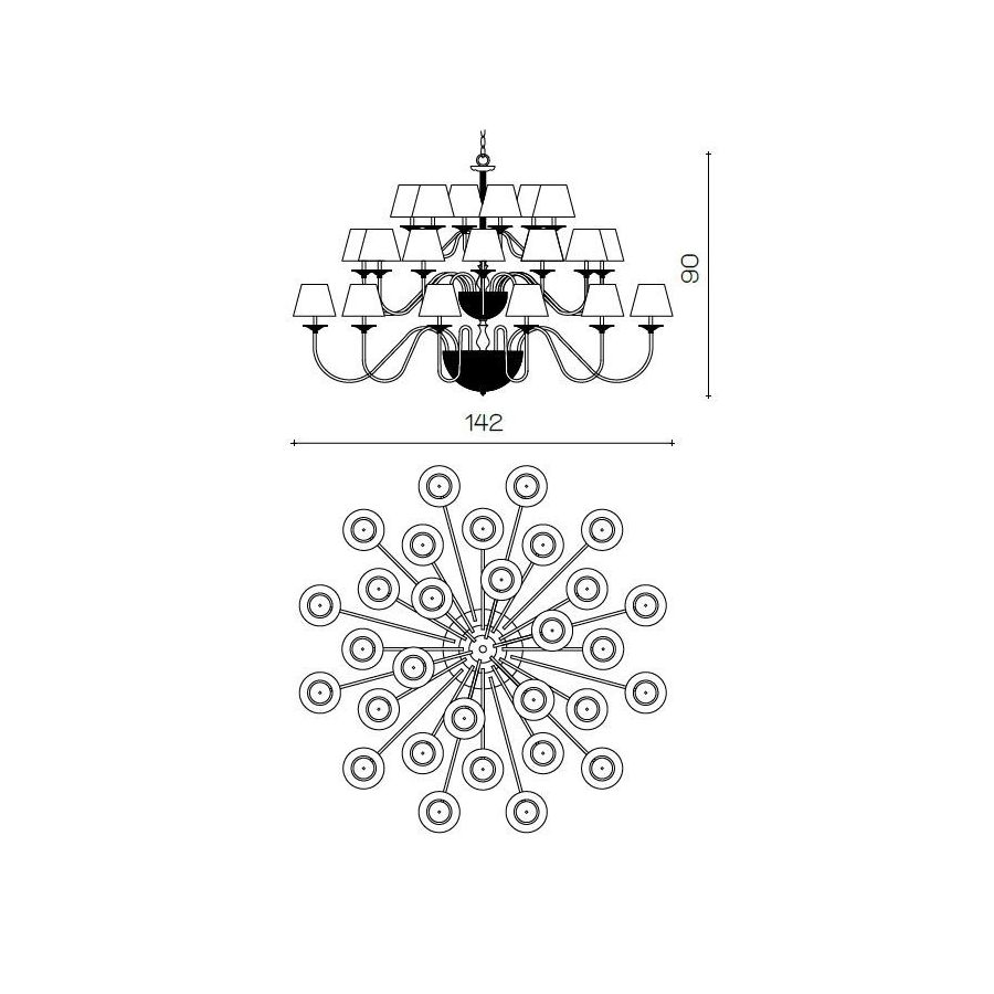 Bulbs: 30xE14x40W| Mått (HxBxD): | cm: 90x142x16 / inch: 35.43"x55.91"x6.3" |