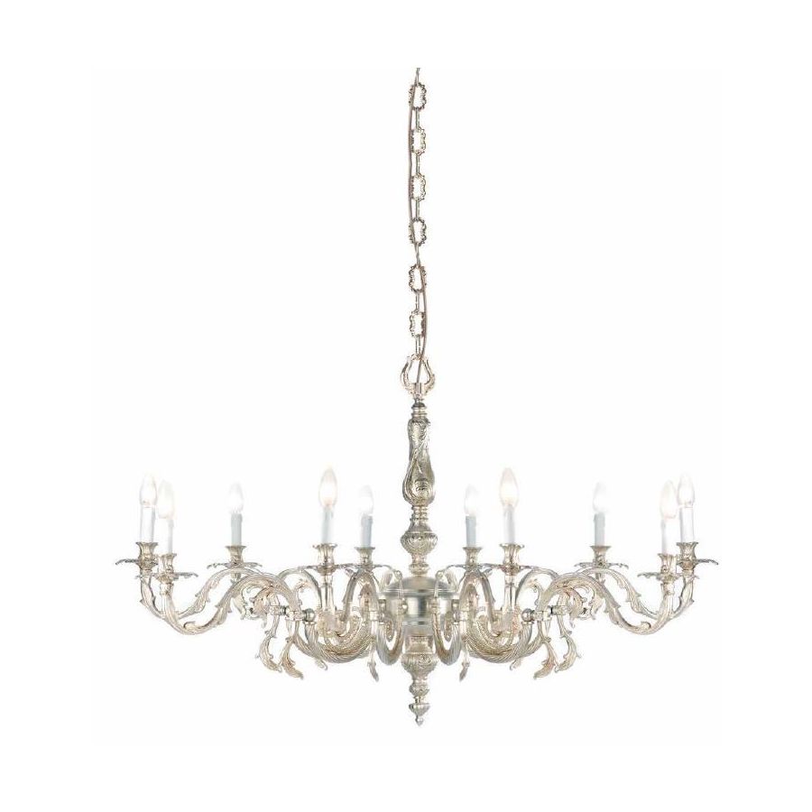 Chandelier 10 lights in cast brass. Lighting item that diffuses the light with great effect in the surrounding environement creating a warm and welcoming atmosphere.