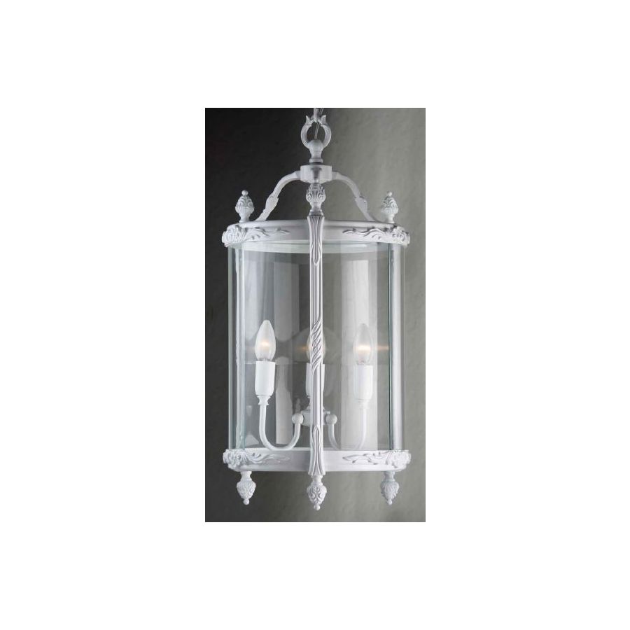 Lantern in cast white brass and clear glass. Lighting item that diffuses the light with great effect in the surrounding environement creating a warm and welcoming atmosphere.