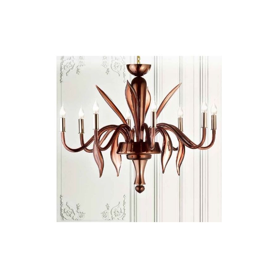 8 lights Chandelier in Coffee Murano glass+mirror effect. Lighting item that diffuses the light with great effect in the surrounding environement creating a warm and welcoming atmosphere.