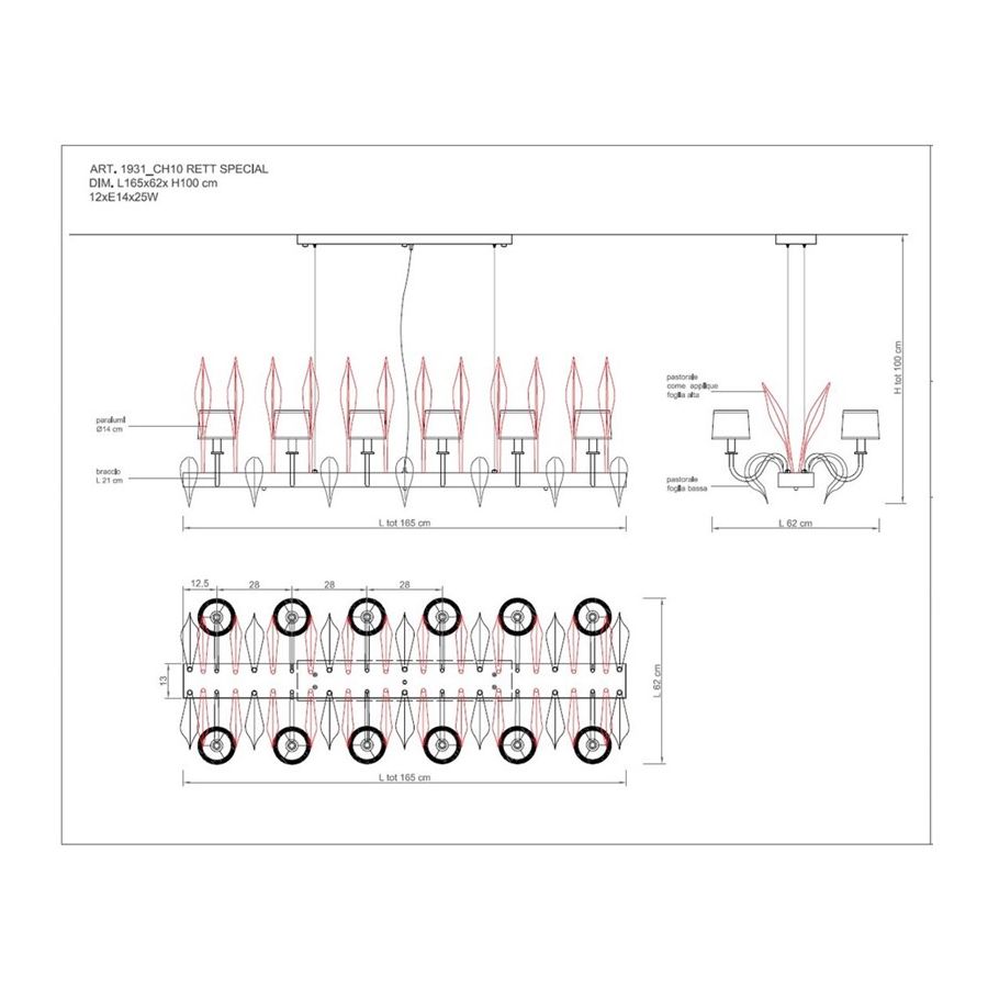 Bulbs: 10xE14x40WWeight: 8 kg