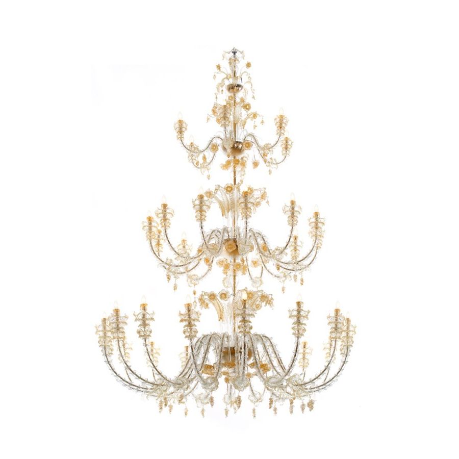 Murano Glass chandelier transparent with Gold decoration. Lighting item that diffuses the light with great effect in the surrounding environement creating a warm and welcoming atmosphere.