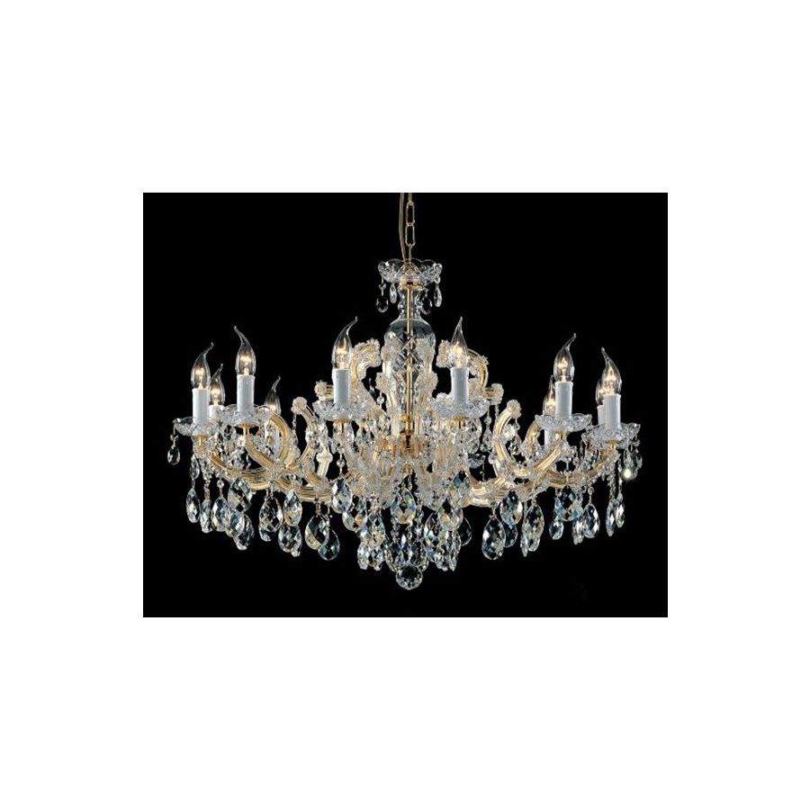 Mariateresa chandelier with Gold plated metal frame covered by transparent glass arms and transparent Crystal pendants. Lighting item that diffuses the light with great effect in the surrounding environement creating a warm and welcoming atmosphere.