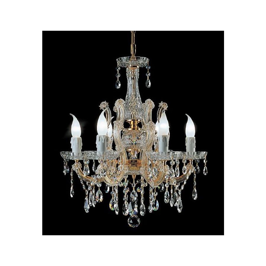 Mariateresa chandelier with Gold plated metal frame covered by transparent glass arms and transparent Crystal pendants. Lighting item that diffuses the light with great effect in the surrounding environement creating a warm and welcoming atmosphere.