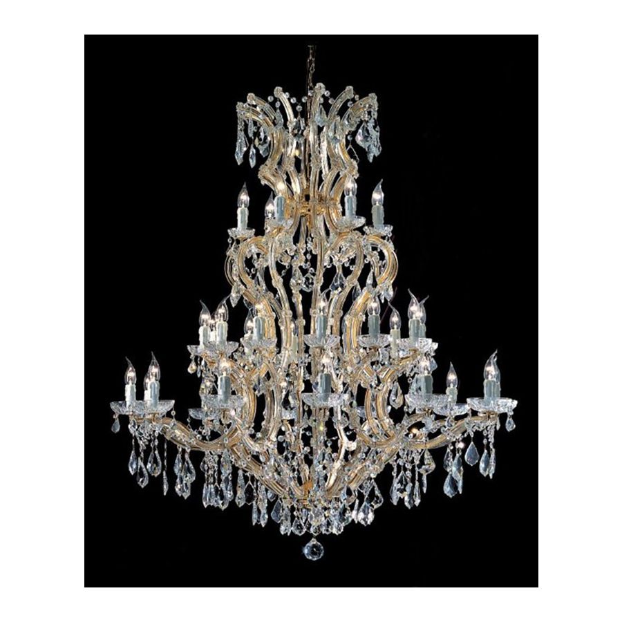 Mariateresa chandelier with Gold plated metal frame covered by transparent glass arms and transparent Crystal pendants. Lighting item that diffuses the light with great effect in the surrounding environement creating a warm and welcoming atmosphere.