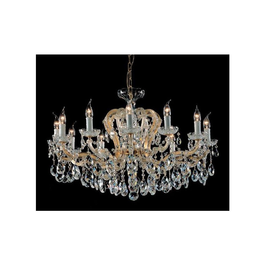 Mariateresa chandelier with Gold plated metal frame covered by transparent glass arms and transparent Crystal pendants. Lighting item that diffuses the light with great effect in the surrounding environement creating a warm and welcoming atmosphere.