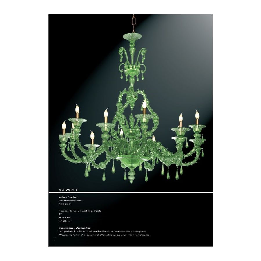 Rezzonico style chandelier with alternating levels with twisted castle, 12 lights. Lighting fixture that diffuses the light into the surrounding environment with great effect, creating a warm and welcoming atmosphere.