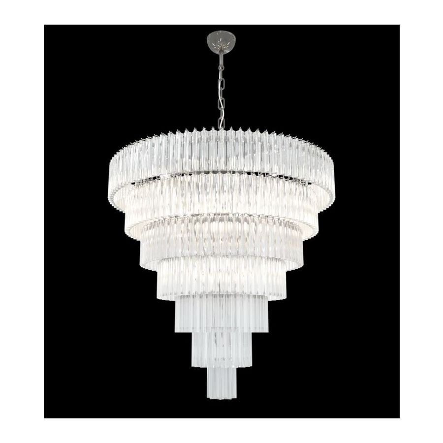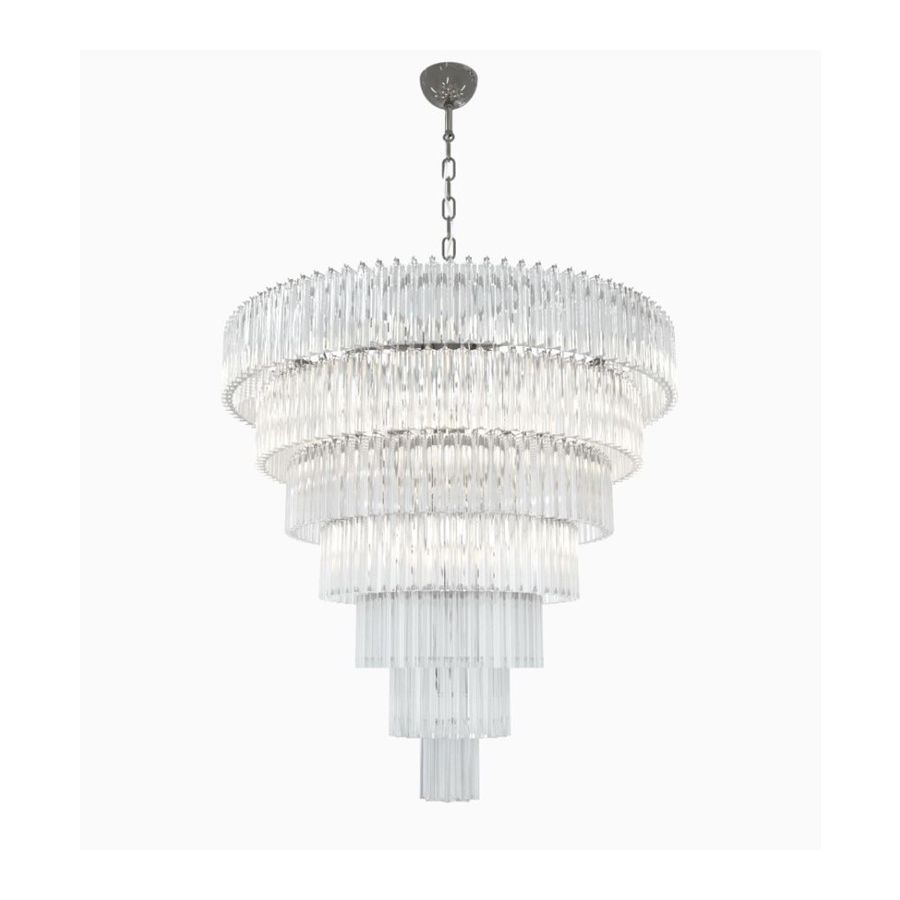 Chandelier with transparent trihedrons Murano glass. Lighting item that diffuses the light with great effect in the surrounding environement creating a warm and welcoming atmosphere.