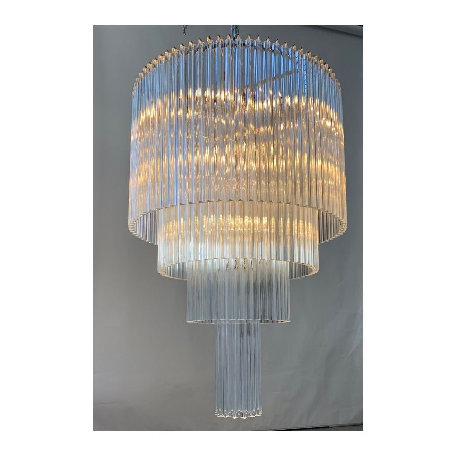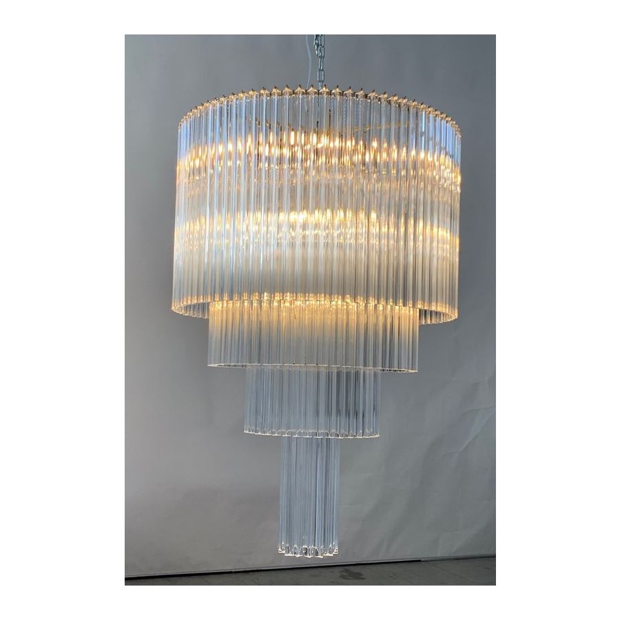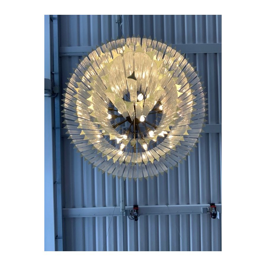 Ceiling lamp with triedro Murano Glass transparent. Lighting item that diffuses the light with great effect in the surrounding environement creating a warm and welcoming atmosphere.