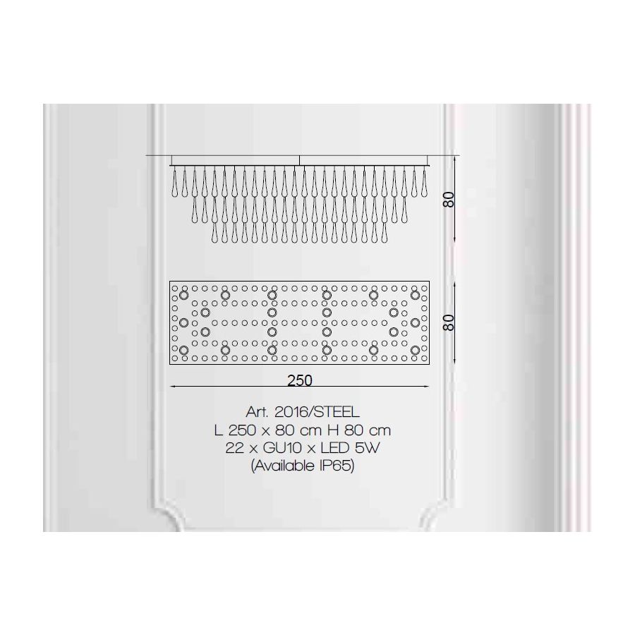 Bulbs: 22 x GU 10 x 5W Led (buls not included)| Mått (HxBxD): | cm: 80x250x80 / inch: 31.5"x98.43"x31.5" |