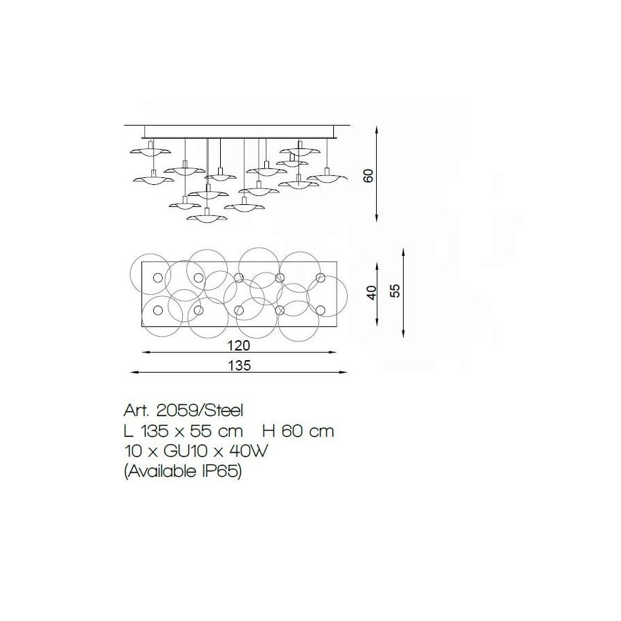 Bulbs: 10 x GU10 x 40W (bulbs not included)Weight: 30 kg