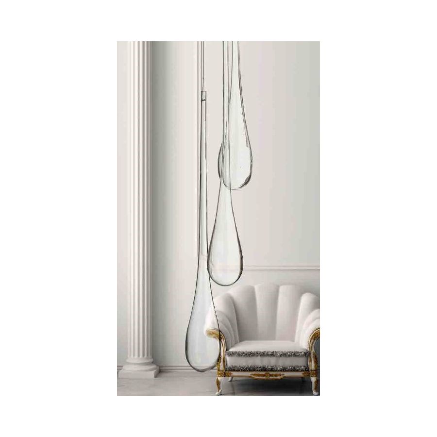 Ceiling lamp with big Murano Glass drops. Lighting item that diffuses the light with great effect in the surrounding environement creating a warm and welcoming atmosphere.