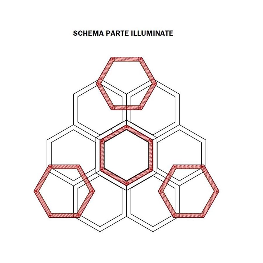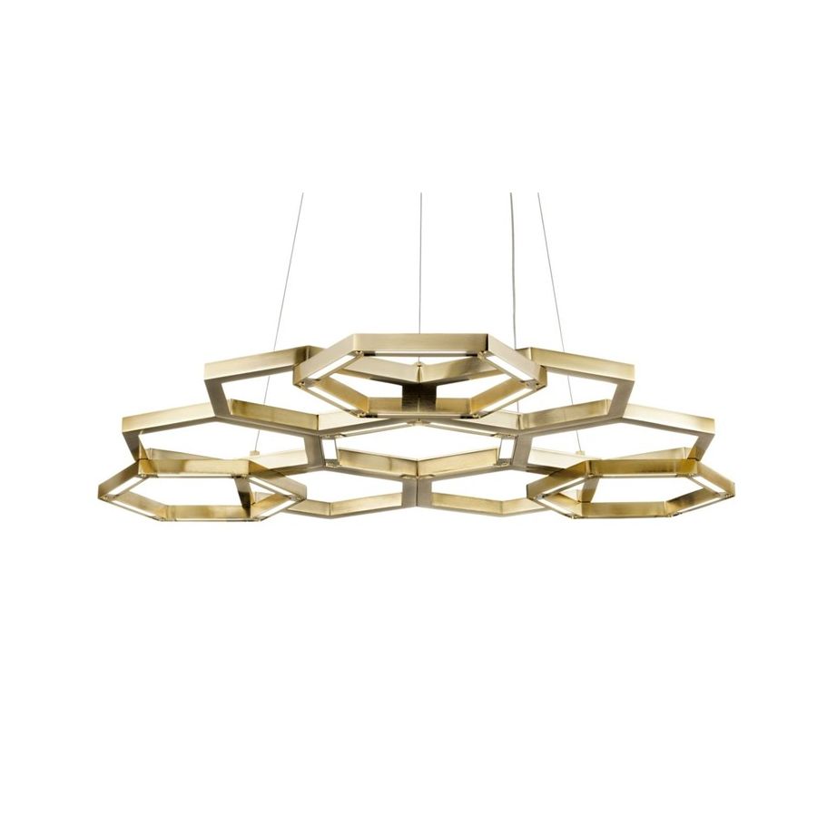 Hexagon collection brass chandelier. Lighting item that diffuses the light with great effect in the surrounding environement creating a warm and welcoming atmosphere.. Available only SGB soft gold brushed or NB nikel brushed or Paint.