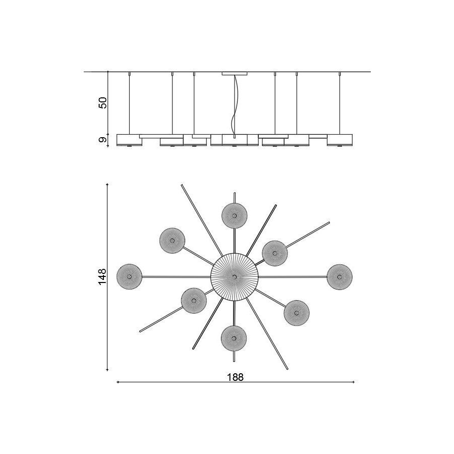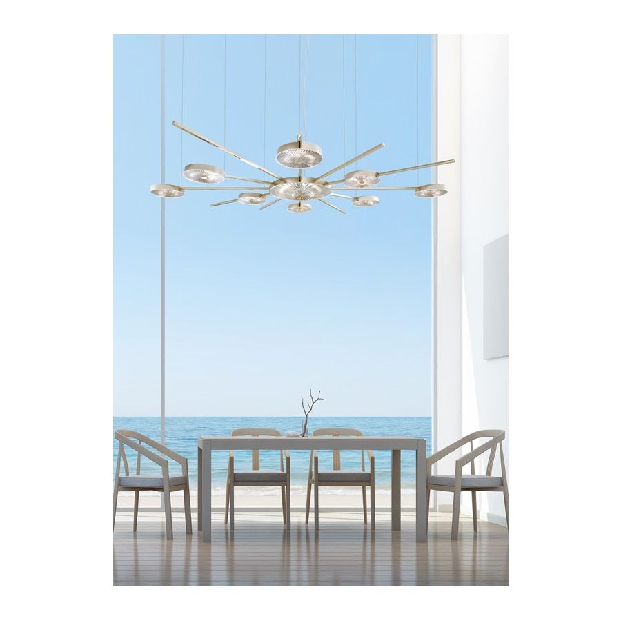 Chandelier with hand-cut italian crystal disks. Lighting item that diffuses the light with great effect in the surrounding environement creating a warm and welcoming atmosphere.