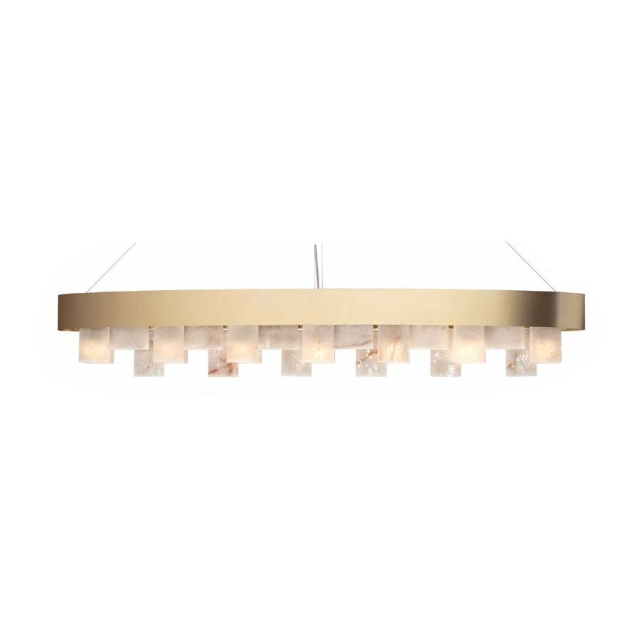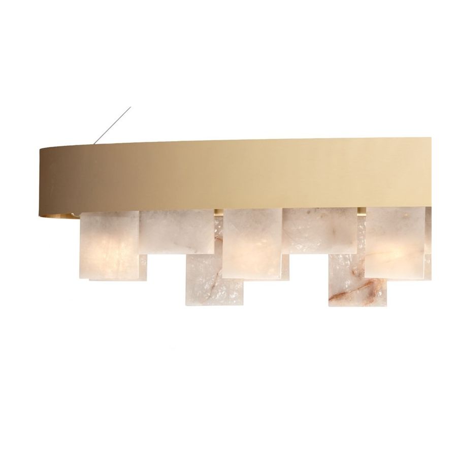 Chandelier with quartz elements. Lighting item that diffuses the light with great effect in the surrounding environement creating a warm and welcoming atmosphere.