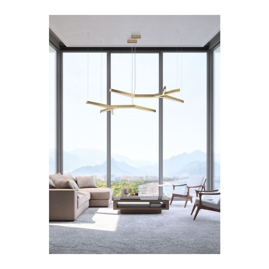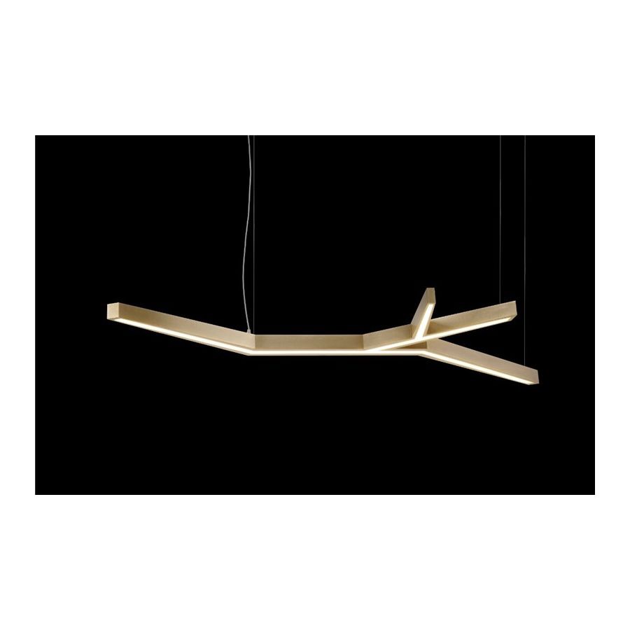 Brushed soft gold metal branch with LED lighting and white metahacrylate diffuser. Lighting item that diffuses the light with great effect in the surrounding environement creating a warm and welcoming atmosphere.