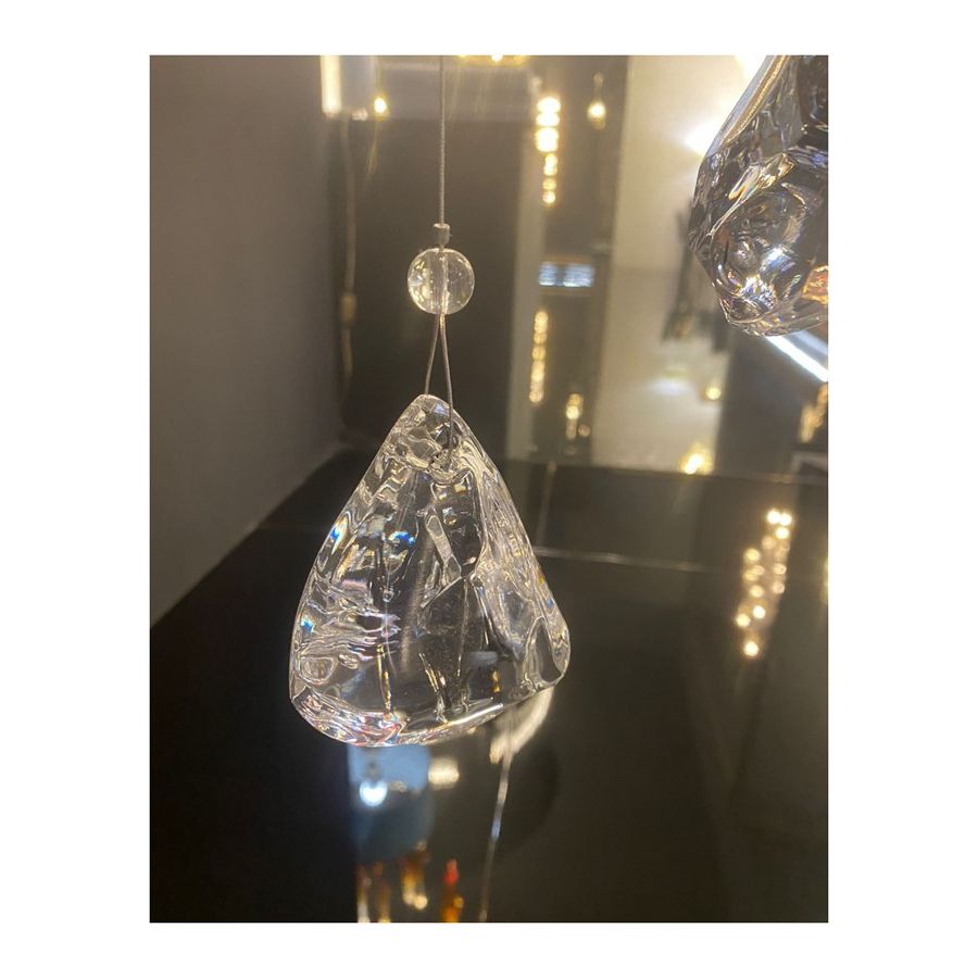 The cascading chandelier is a scenographic work of art that immediately captures attention thanks to its unique and elegant design. Composed entirely of ice-effect crystal, this chandelier creates a harmonious and spectacular play of light, illuminating the environment with timeless elegance. In summary, the cascading chandelier with ice-effect crystal is a unique piece of furniture, capable of enhancing any space with its beauty and breathtaking light. 120 Crystall ice
