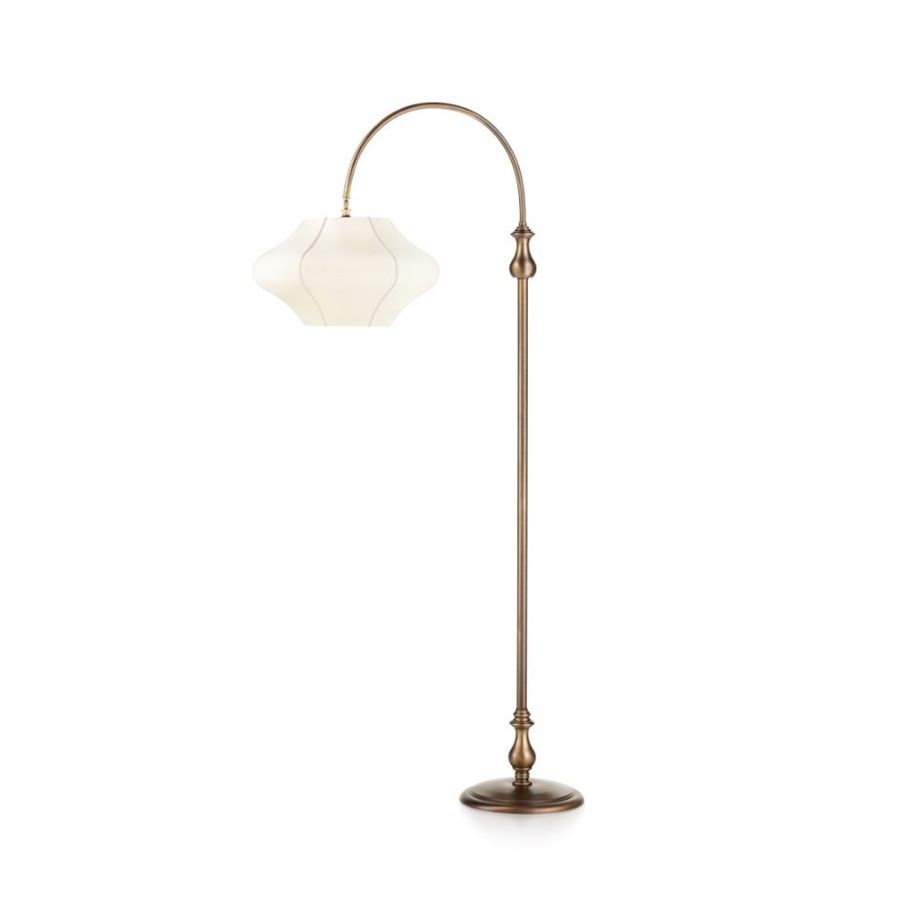 Elegant and timeless floor lamp, crafted in metal with a hand-brushed burnished finish. The arched arm supports a refined lampshade in double ivory silk fabric, which diffuses a soft and enveloping light. Ideal for living rooms, bedrooms, or reading corners, it combines functionality and classic-contemporary style with a touch of exclusive craftsmanship.