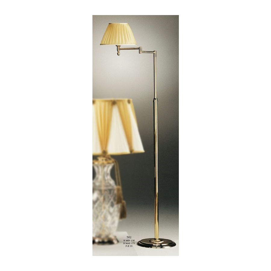 Bridge floor lamp worked with silk lampshade. Lighting fixture that diffuses the light into the surrounding environment with great effect, creating a warm and welcoming atmosphere.
