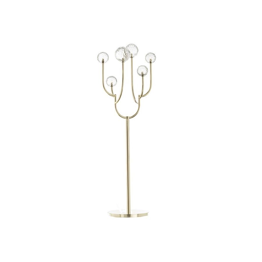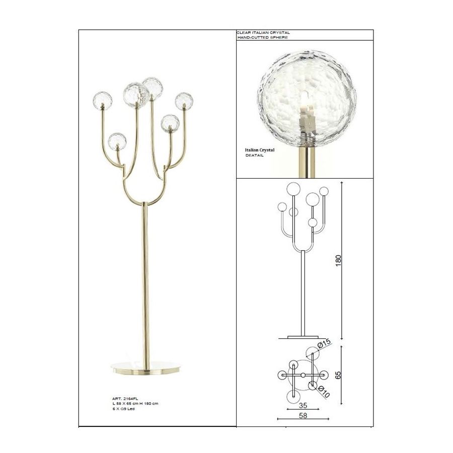 Floor Lamp in soft gold finish with hand-cut Italian crystal spheres. Lighting item that diffuses the light with great effect in the surrounding environement creating a warm and welcoming atmosphere.