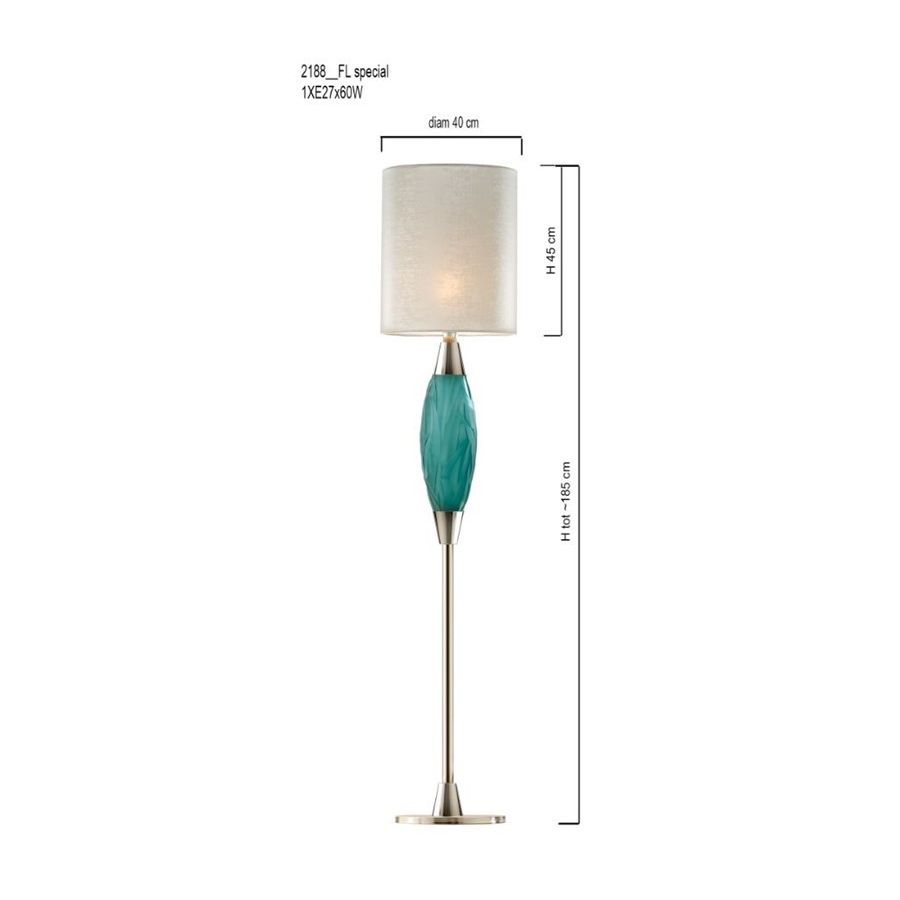 Floor lamp matt turquoise Italian crystal and fabric lampshade. Lighting item that diffuses the light with great effect in the surrounding environement creating a warm and welcoming atmosphere.