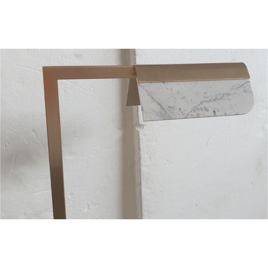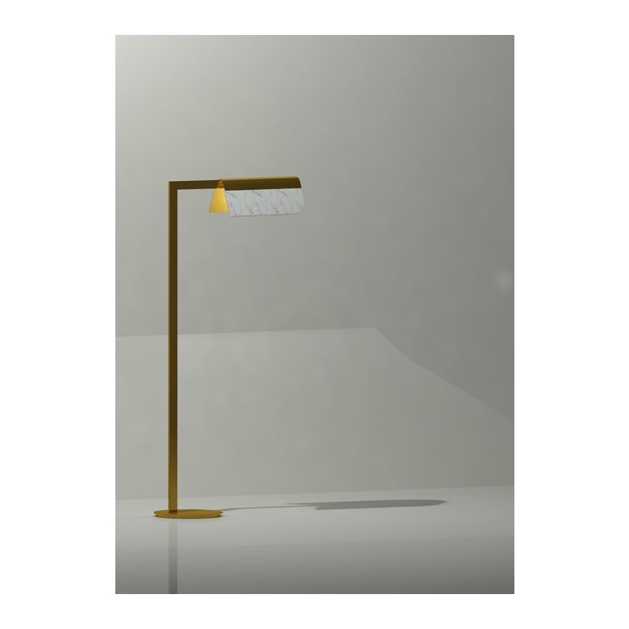 Floor reading lamp in soft gold finishing and white Carrara marble element. Lighting item that diffuses the light with great effect in the surrounding environement creating a warm and welcoming atmosphere.